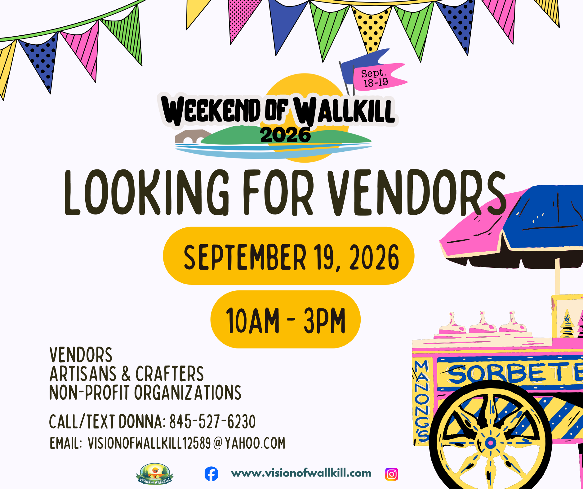 The Weekend of Wallkill will happen again on September 18 and 19, 2026. We have many events and programs on deck for the whole family to enjoy! We are also looking for Vendors! More information coming soon!